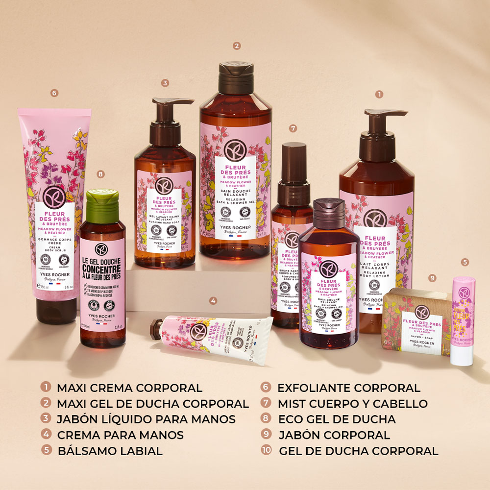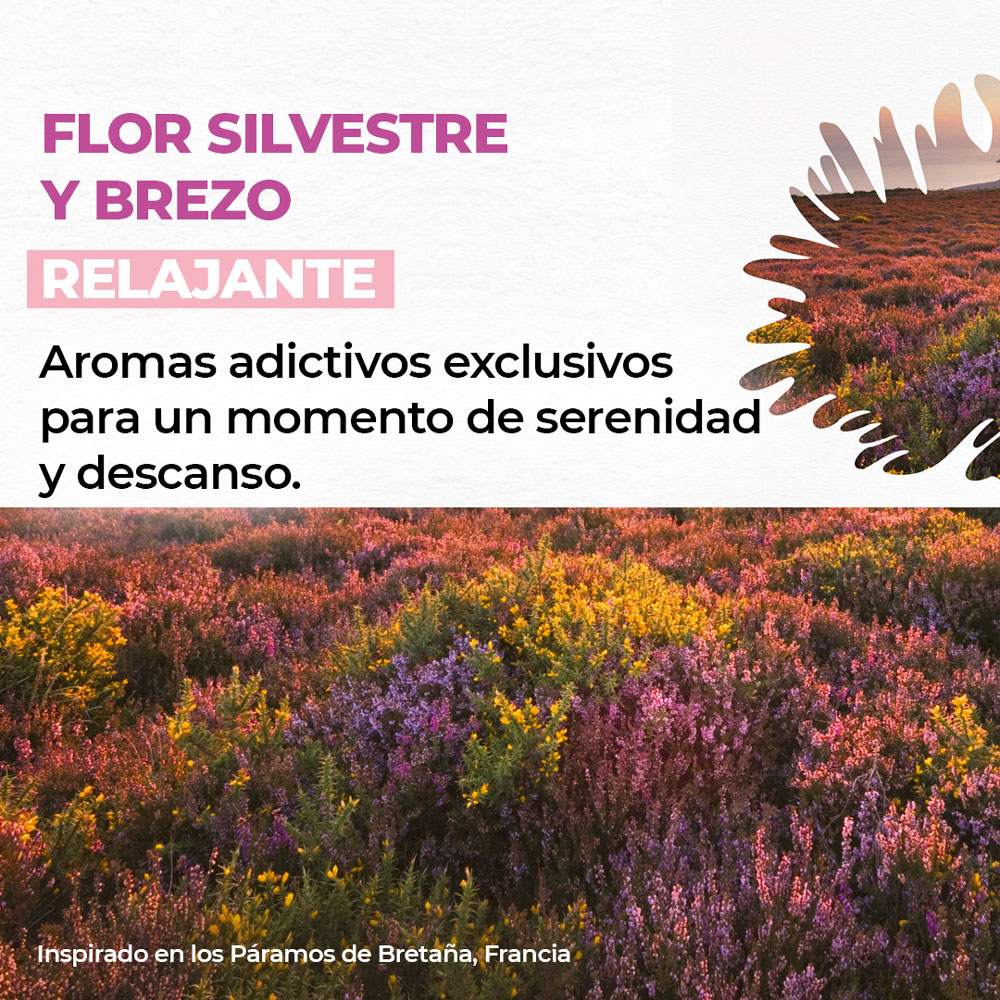 Maxi Crema Corporal Flor Silvestre y Brezo; sin siliconas ni colorantes para una piel hidratada y delicadamente perfumada.