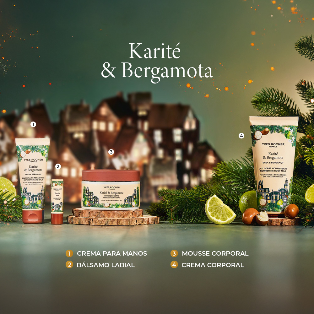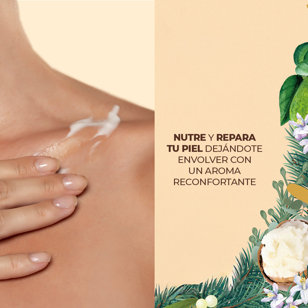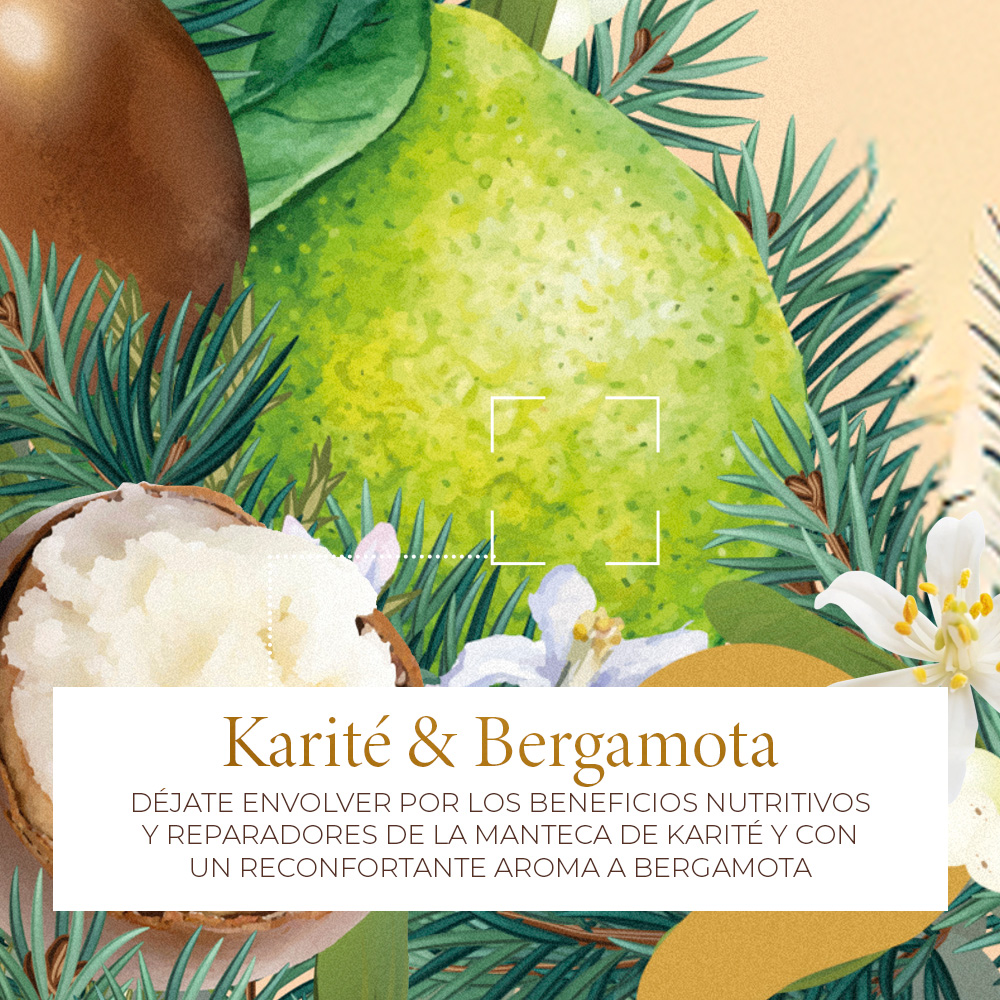 Leche Corporal Reparadora de Karité y Bergamota; Nutre y repara tu piel dejándote envolver con un aroma reconfortante.