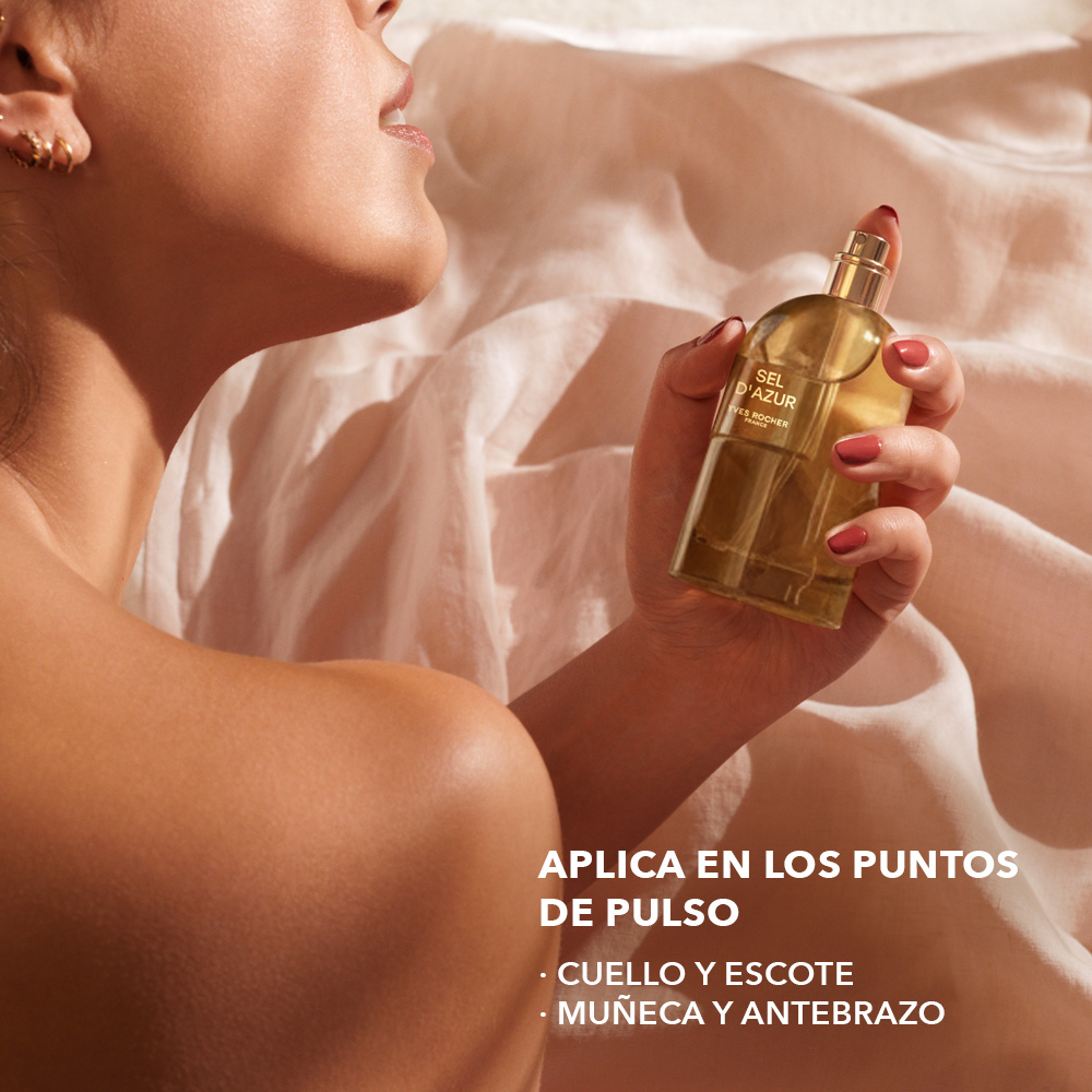 Mini Eau de Parfum Sel D Azur, 30 ml Mujer; "Un paisaje soleado de color azul.". Descubre la energía chispeante del limón y la toronja, suavizada por la textura amaderada del cedro. Un perfume cítrico, fresco ideal para empezar la mañana o acompañar un momento casual. -Marie Salamagne, Perfumista.