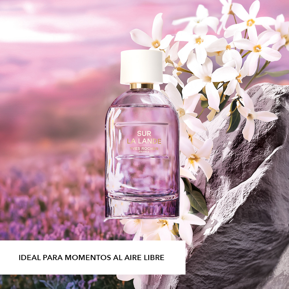 Mini Eau de Parfum Sur La Lande, 30 ml Mujer; "El poderoso encuentro entre los páramos floridos y la brisa del mar." Siente el encuentro entre la manzanilla, el jazmín y la fuerza mineral de las algas. Un perfume fresco, floral, ideal para momentos al aire libre. -Caroline Dumur, Perfumista. Familia Olfativa: Floral Ámbar Intensidad: +++ Notas: Manzanilla, Jazmín y Algas