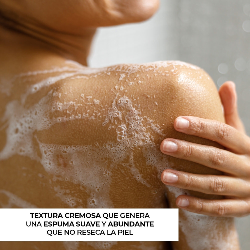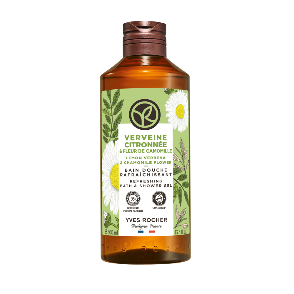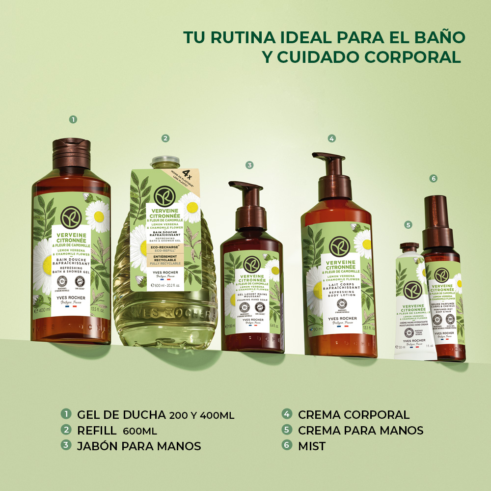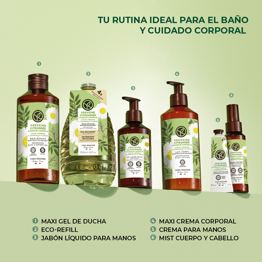 Maxi Gel de Ducha Corporal Verbena de Limón y Flor de Manzanilla; sin sulfatos con un aroma adictivo para una sensación natural.